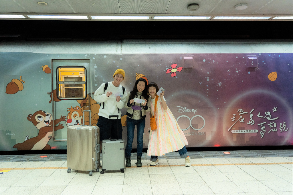 ▲ 范少勳、況明潔、Lulu一起搭乘火車南下接旅伴。(圖:東森)