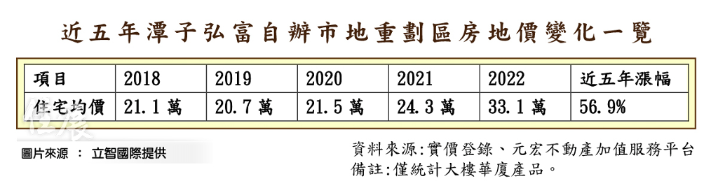 潭子、豐原近年建設腳步加快,大量利多挹注明顯帶動剛性購屋需求,尤其潭子區擁有潭子科技園區與聚興產業園區帶動人口紅利,綠空廊道、潭子國民運動中心、國道4號豐潭段接74號也陸續完工,備受購屋族關注,其中弘富重劃區更因擁有大量綠覆,吸引不少自住客群搶進,根據實價登錄資料統計,弘富重劃區「住宅大樓均價」在五年內就有56.9%的漲幅。