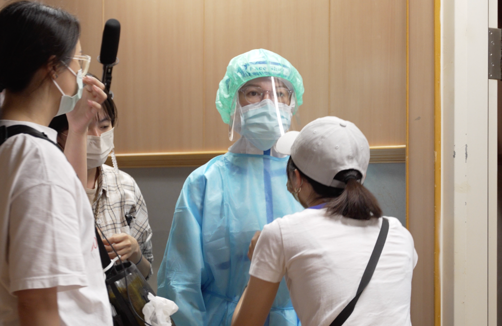 拍戲時最辛苦的部份也是穿防護衣,前後加起來至少十層,隨時都要噴酒精,細節很繁複,又要演戲,呼吸調節很不容易。