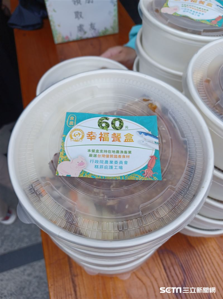 農委會今(20)日起媒合喜憨兒基金會、糕菲庇護工場、勝利廚房等11家製作販售60元幸福餐盒,每週販售1000份,並結合全聯(台北市30~40間門市)及家樂福(雙北30家)販售。之後全台全聯及家樂福也將陸續加入開賣,各販售8000份,所有地點共販售17000份。