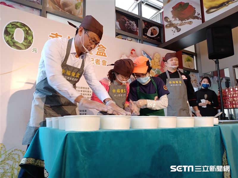 ▼▲農委會主委陳吉仲(左一)和公益團體攜手製作幸福餐盒。(圖/記者陳弋攝影)