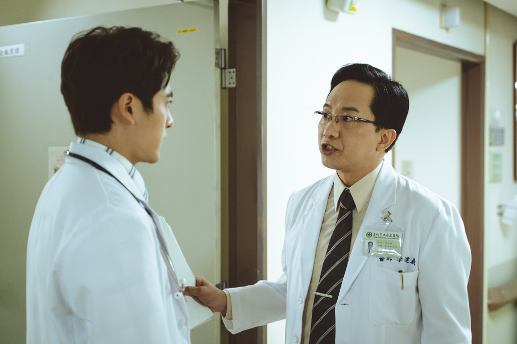 ▲ 官家宇(右)飾演感染科主任,訓斥黃新皓(左)所飾演的菜鳥醫生摔病歷慘被金屬病歷版刮傷濺血。(圖:公視)