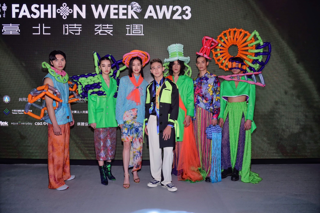 ▲ 洪璽皓(中)製作的氣球藝術飾品由伊林模特兒演繹。(圖:伊林娛樂)
