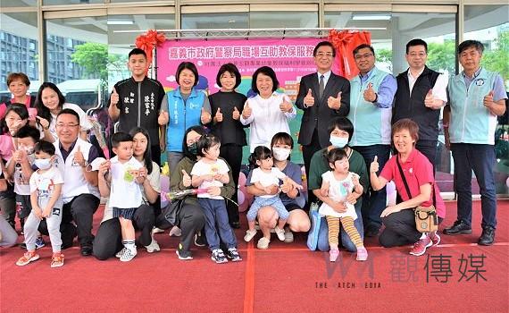 (觀傳媒嘉義新聞)【記者郭政隆/嘉義市報導】嘉義市警察局為鼓勵生育後的媽媽安心返回職場,並營造友善職場教保服務環境,積極爭取設置職場互助教保服務中心,歷經一年多的規劃及工程建設,5/8日於嘉義市政府警察局第一分局正式揭牌落成啟用,儀式中除黃敏惠市長贈送幼生小禮物外,教保中心的幼生也製作了母親節卡片,送給在場所有媽媽,場面十分溫馨。