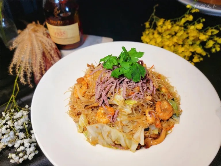▲ 爆香鴨絲炒米粉。這道台味爆香鴨絲炒米粉吃得到鹹香滑嫩的香烤鴨絲,加上蝦仁、魷魚、青菜等豐富配料,好吃到讓人一碗接一碗。(圖:行遍天下)