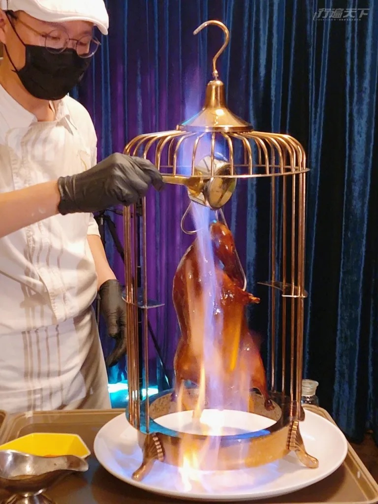 2012年創立的「老新台菜」在高雄有九如創始店和十全店,九如店於2020年改裝為復古摩登新風貌,經典的無菜單料理更創新推出「干邑火焰櫻桃燒鴨宴」,每日限量10隻,被封為高雄最難訂的夢幻烤鴨!嚴選花蓮玉里75天櫻桃鴨,以甘草、陳皮、桂皮、桂枝等12種中藥醃製,明火烘烤至外酥內嫩,師傅獻上桌邊烤鴨火焰秀,淋上人頭馬1738干邑白蘭地,而後片鴨,片皮燒鴨虎皮包、爆香鴨絲炒米粉、鴨絲桂花鬆、濃郁鴨架燉白湯......一鴨多吃,不時推出創意新菜色。