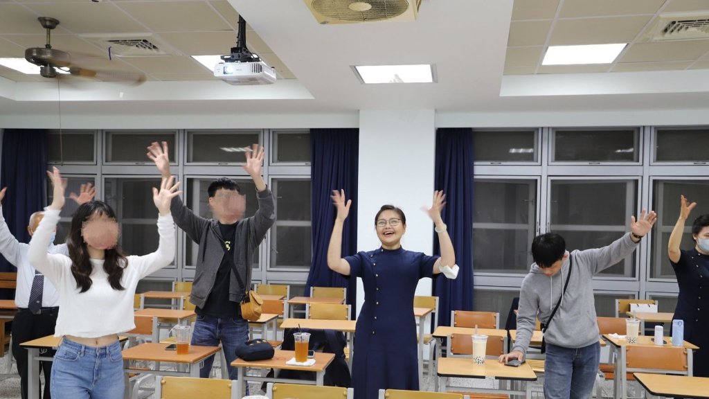 林嘉俐到大學擔任志工媽媽,與學生同樂互動