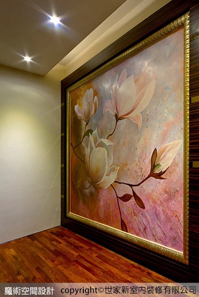 9.【圖說】轉入私領域的空間轉折玄關,藉由壁畫式大尺寸畫作,引領人文風雅氛圍。