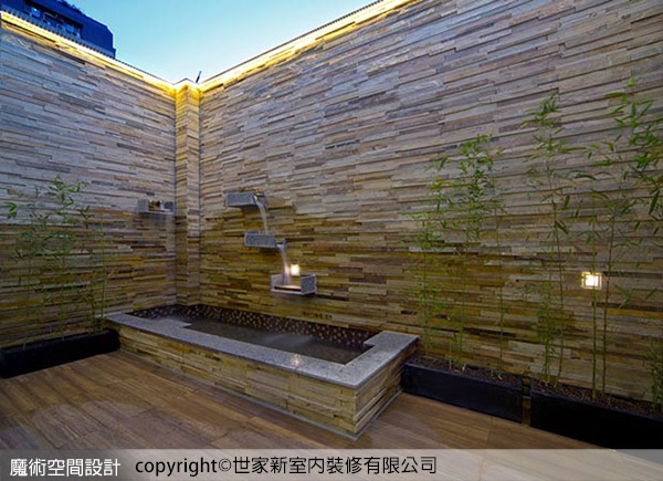 14.【圖說】林垚豐總監在五樓露台浴室外以岩片砌築自然高牆,營造流水飛瀑、竹曳生姿的禪韻景致。