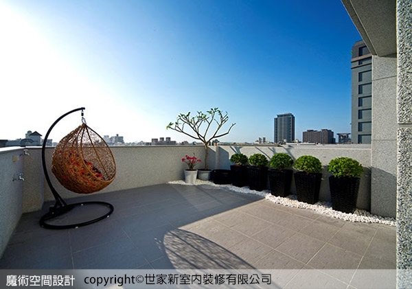 7. 頂樓開闊大露台,透過南洋植栽與藤編吊椅,打造悠哉快活的渡假新樂園。