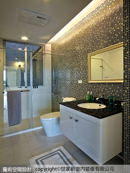 17.【圖說】世家新室內設計以馬賽克牆面搭配光帶照明,浴室流露簡潔明亮的現代感。