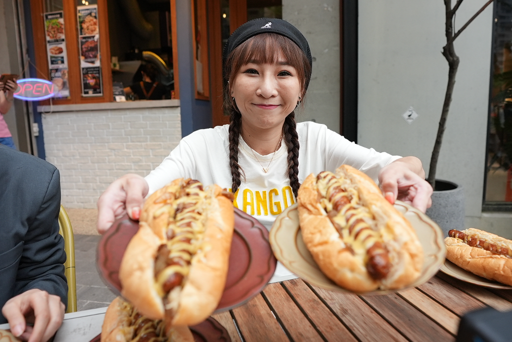 ▲ 大胃王艾嘉一口氣吃完6個巨大香腸堡。(圖:緯來綜合台)