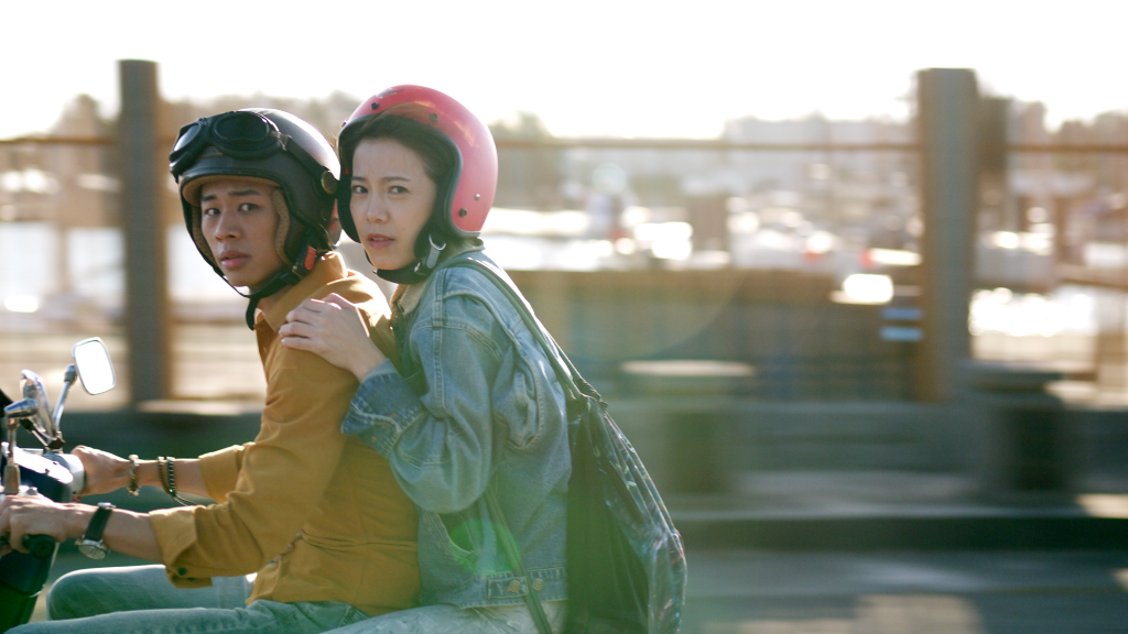 ▲ 廖苡喬與吳政迪寒流中拍騎車戲冷到直跳抖肩舞。(圖:公視台語台)
