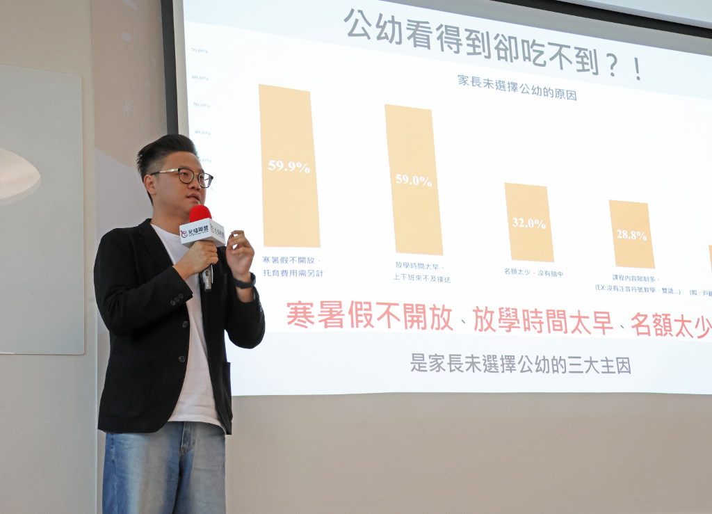 ▲ 兒盟友善育兒推廣大使修杰楷分享選擇幼兒園經驗。(圖:兒福聯盟)