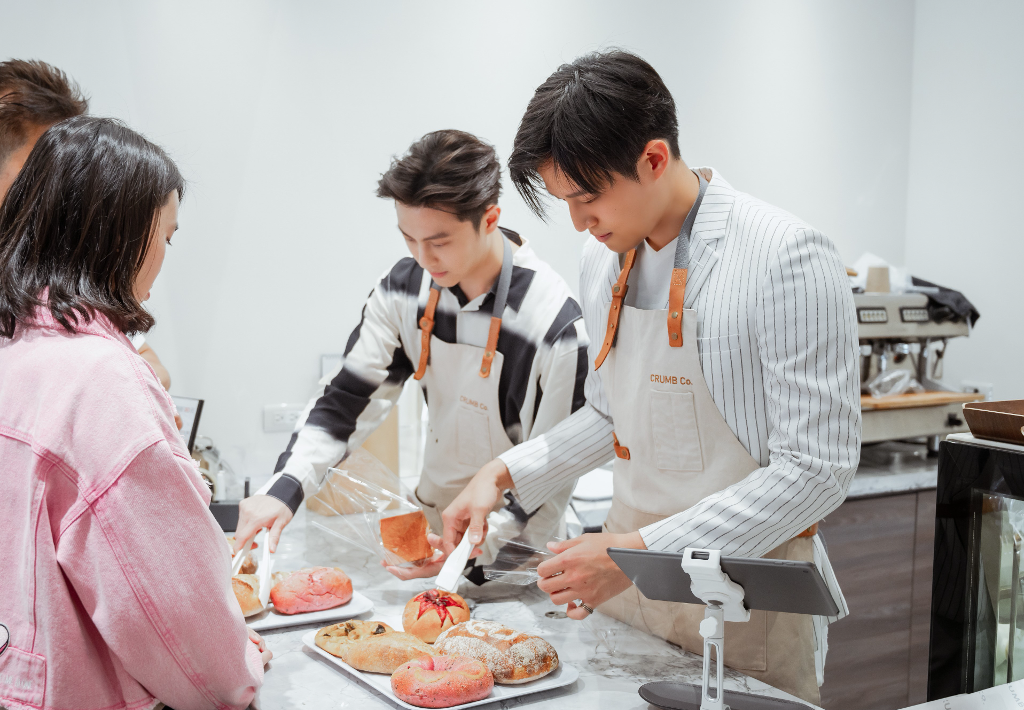 ▲ 徐新洋(右)邀好友邱勝翊替自家麵包店站台。(圖:艾迪昇傳播)