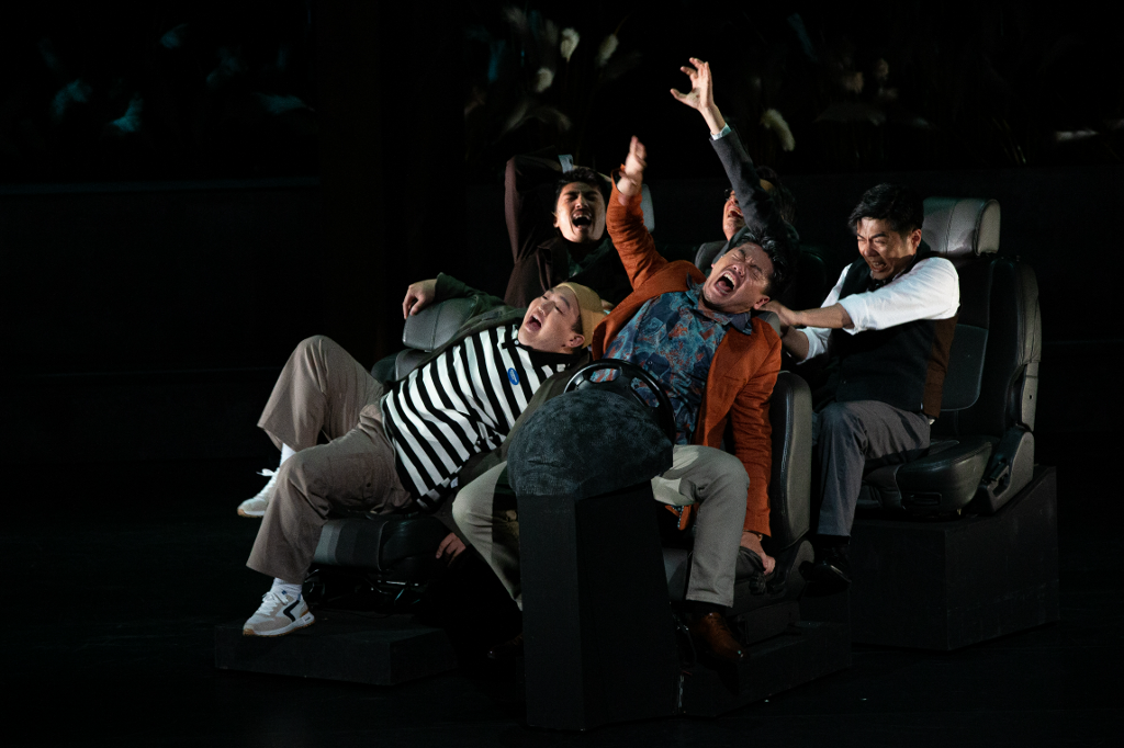 徐麗雯讓中原本朦朧的女性角色李雪浮出水面,並且在原作的基礎之下推展出全新的情節,讓他們在命懸斷壁之際,重新建構人物關係,讓他們有機會為自己發聲,捍衛自己的回憶。取材自原著小說中的對話、旁白與獨白,除了保留文學的韻味,也展現語言與身體的詩意。而這樣的詩意也延續到舞台空間上,舞台設計張哲龍透過上下佈局的時空對比,將暗夜公路與過往回憶並置,象徵生命的危難與轉機。衝出邊坡的豪車,如同對眾人命運的審判,懸而未決。