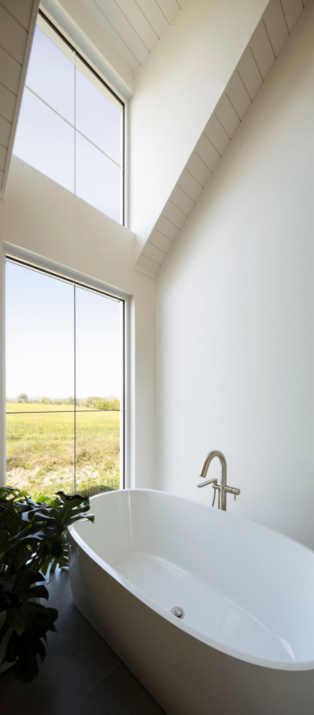 根據區域面積大小來決定你的盆栽尺寸,同時視你的裝潢風格來確定植物葉片大小,配合北歐極簡風格,也許你也可以在浴缸旁邊放一盆喜歡待在陰涼處的龜背竹。DKA/Comtois Residence