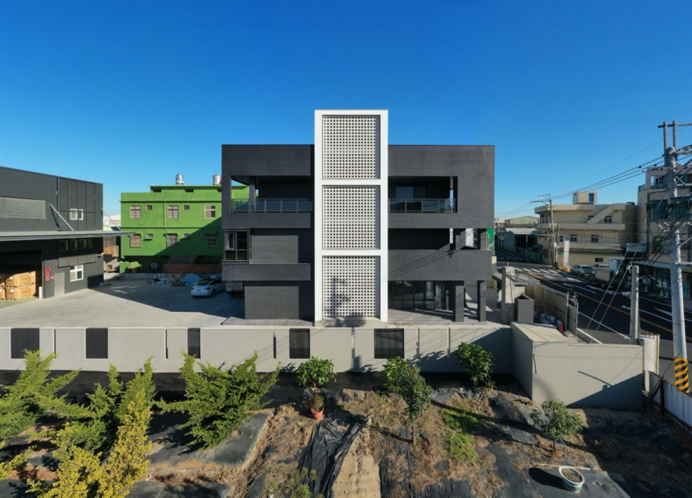 望向建築立面,外牆選用黑與白色陶砂骨材進行大面噴塗,並設計細膩的分割線條增添主體細膩度,再輔以黑灰色丁掛磚穿插其中,增添視覺層次感。除此之外,團隊運用專業工法將原建物外凸的弧形樓梯拆除後,打造整面白色花格磚牆,並將花格磚均分為三、垂直組構於四層樓高的建物中,使原先昏暗的室內空間引入大量光線。不僅創造通透且開闊的格局,亦讓建築立面更多變、有趣。其中,考量傳統空心磚無結構行為而存在的結構安全疑慮,因此特地選用由專業工匠手工窯燒製成的白色花格磚,並將花格磚四周採特殊工法進行車溝,讓鋼筋得以貫穿、搭接整座花格磚牆並延伸至結構樑、柱中。賦予挑高的牆體擁有獨立的結構行為,增添整體的穩固性及安全性,徹底排除傳統花格磚耐用度不高及載重過重的問題。