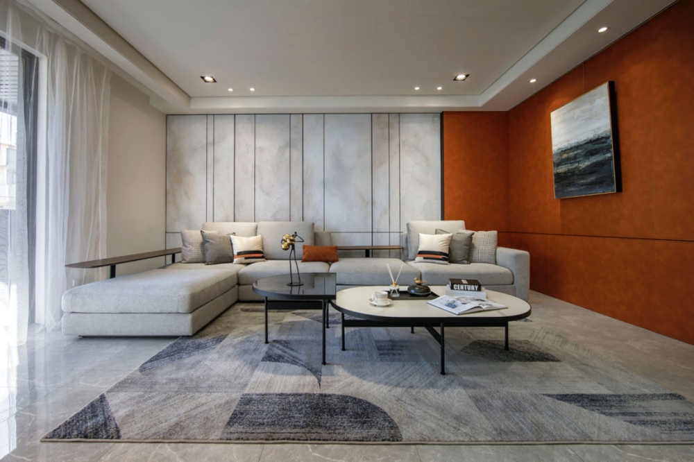 整體考量屋主喜愛的現代美式風格,以黑、白、灰三色調作為主要配置,搭配多種特殊皮革、鐵件及軟裝質料,呼應業主自家產品的多元及特殊性。並添以些許跳色元素與弧形曲面設計,巧妙消弭載體的冷硬感。經由團隊的精心擘劃,運用建築物座向與日照間相應的時間關係做為規劃核心,並重新設計出安全穩固的建築結構,將設計美感融入生活的同時,也解決老舊建物存在的結構安全問題,從而築構出美感、氣度、溫度與安全兼具的居所環境。