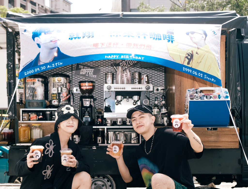 ▲ 吳昱廷、高有翔與生日應援餐車,歌迷連3天應援。(圖:滾石唱片)