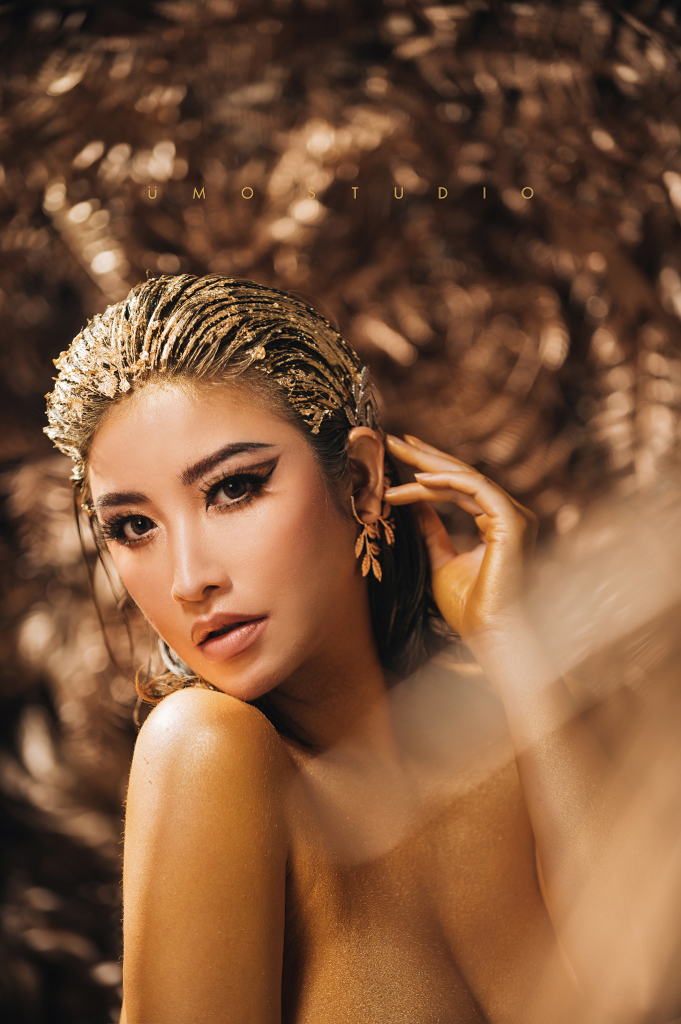 這個造型不僅是一種視覺震撼,更是許維恩對於新生命最純淨、最自然狀態的詮釋,金漆閃爍的光芒為整個畫面增添一份神秘和獨特的氛圍,每一張相片彷彿呼應著人生從零開始,最終也回歸於零的哲學思考。維恩希望透過這樣的作品,傳達生命孕育的美好,以及母性光輝的象徵。