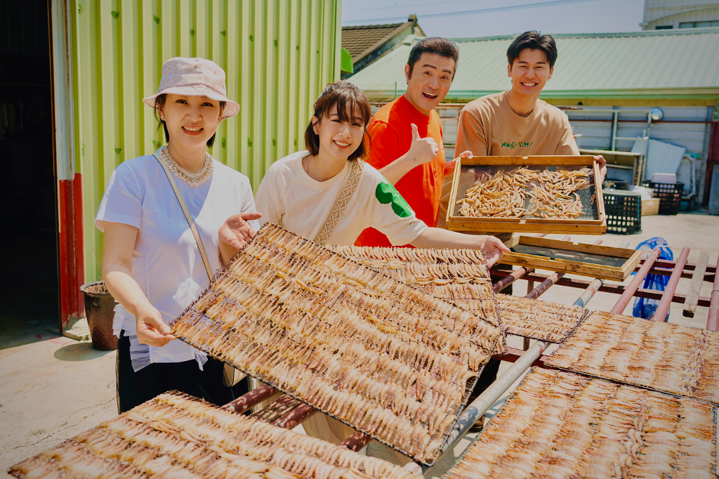 引頸期盼的台南之旅啟程,想不到首日導遊竟是外國人風田,來台發展已九年的他,無論工作還是私下都很常來這,此趟旅行他想從日本人的視角介紹台南,並和大家分享最愛的文青行程。出發前風田自曝駕照考了四次才通過,方志友三次也不惶多讓,郁方不禁冷汗直流:「年輕人珍惜生命啊!」李㼈則自告奮勇攬下開車重責,大哥風範十足。早飯在保安路品嚐道地府城小吃,中午動身去青鯤鯓漁村體驗製作火燒蝦乾,風田提議PK剝蝦殼看誰最快?比賽結果證明,在兩位幸福人妻(郁方和方志友)開心吃蝦的背後,總有位默默剝蝦的好老公,而人夫李㼈和暖男風田更是實力擔當,兩人的巧手連老闆娘都讚不絕口。