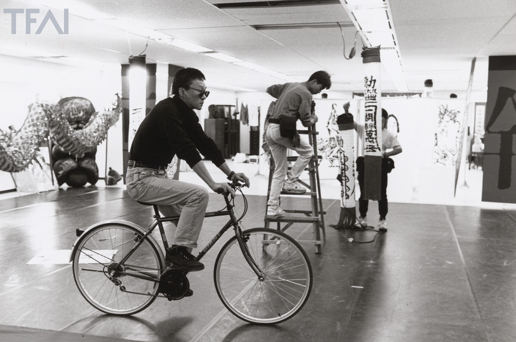 ▲ 《獨立時代》拍片現場,楊德昌騎著腳踏車來回逡巡。(圖:國家影視聽中心)