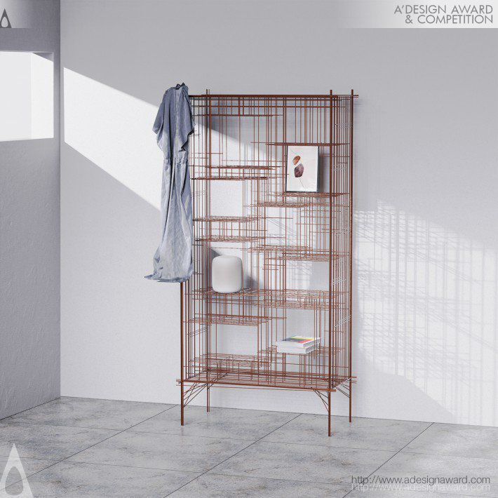 設計師使用算法組合線來創建存儲空間,線可以在混亂中有條不紊地構成。遠遠看去,是一堆亂七八糟的線,而事實上是個置物架。這項前衛的層架設計的包裹著現代科技與不確定性的藝術之美。