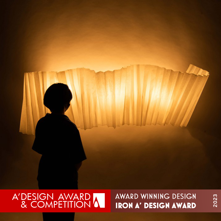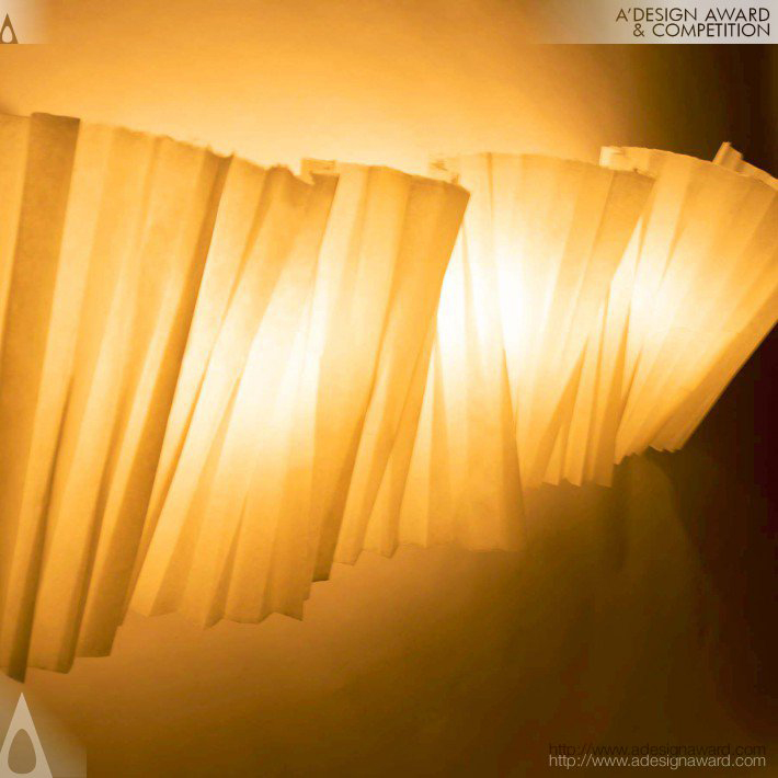 以日本紙質做燈飾設計,作為室內空間的點綴。造紙時,纖維相互纏繞,縱橫搖晃。因此設計師試圖創建一個可以上下左右移動的形體,並尊重工匠的建議留下耳朵,以保留和紙獨特的魅力。