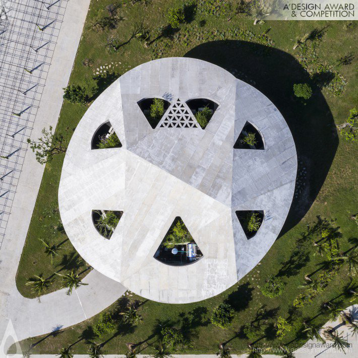 此項目為越南中部的工廠。周邊地區以其惡劣的氣候聞名,旱季有熱風,雨季有颱風和洪水。這座建築位於山和海之間,在方向和時間上構成了一系列不同的(萬花筒)景觀。旨在創造一個免受惡劣熱帶氣候影響的保護空間,並加強用戶與自然的接觸。