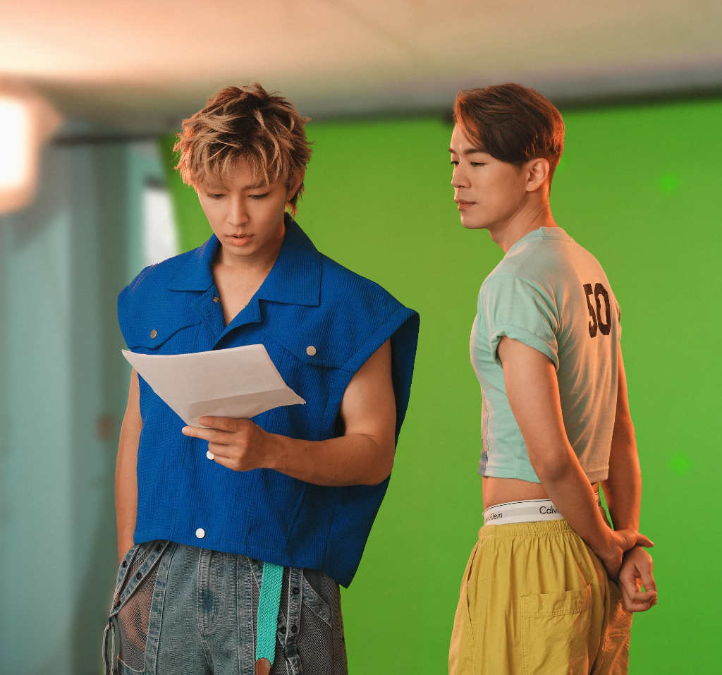 MV拍攝取材MTV時代的復古拼貼風格,混合長輩圖、卡拉OK字幕與落日餘暉下的對唱,K6突破性感尺度露出腹肌及內褲頭的造型,畫面裡他與炎亞綸幾近親吻的互動令人看了怦然心動,為何如此放得開?K6這麼形容:「我們認識很久了,炎亞綸敢說的個性正好互補我只會碎碎念的行為,造型除了反差有趣外,也很貼近歌詞想表達的內容和形式。」有趣的是,兩人得同時站在一個超小的旋轉盤上,臉對臉僅差2公分就要親到對方的距離、還要邊對嘴邊深情相望,K6被陳珊妮下令要詮釋如「小白兔」般的弱勢、炎亞綸則要發動強攻展現侵略,未料炎亞綸被旋轉道具弄得暈頭昏腦,K6則被訓斥:「你的胸肌不要那麼強勢!」