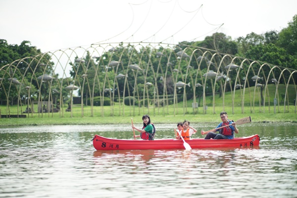 支流呈現彎月弧度,故有個優雅的名字─月河,造訪傳藝可買張船票,乘畫舫船賞河岸景緻,而今年首度開發《輕舟劃月河》,則給了旅客全新角度、划獨木舟賞傳藝!
