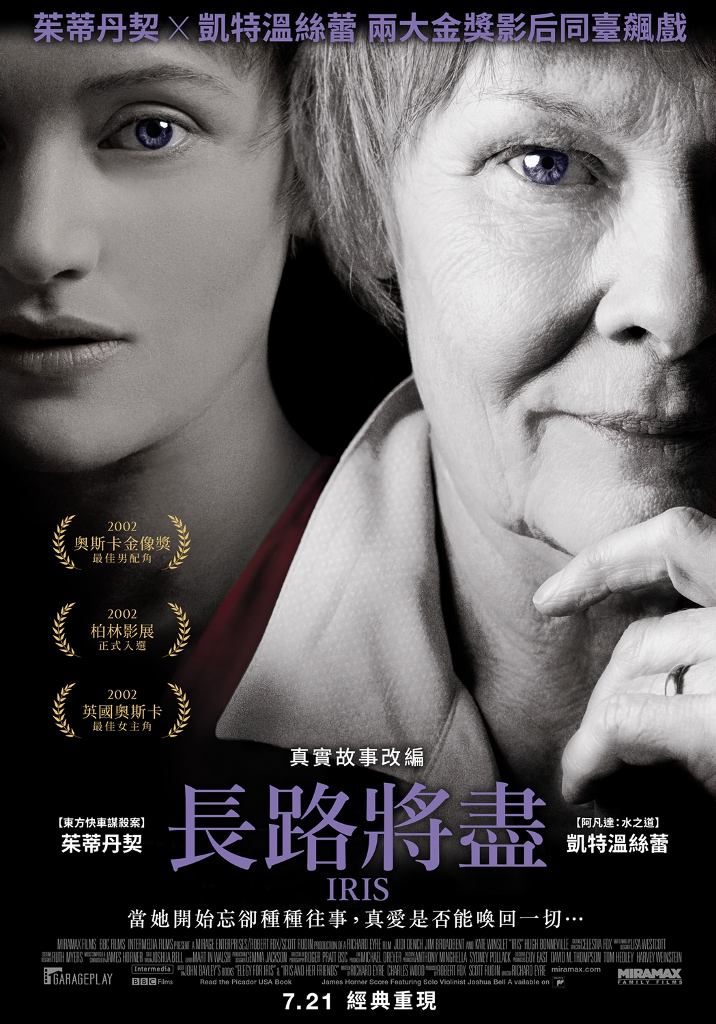 Murdoch)的人生故事,曾被譽為「全英國最聰明的女人」的她,在晚年飽受阿茲海默症所苦。茱蒂丹契和凱特溫絲蕾在片中分別飾演年長和年輕時的艾瑞斯梅鐸,兩人最終分別獲得奧斯卡最佳女主角、最佳女配角提名,本片是影史第二部以相同角色同時入圍這兩個獎項的電影,前一部是《鐵達尼號》,巧合的是,該片同樣是由凱特溫絲蕾飾演年輕的女主角「蘿絲」。《長路將盡》將於7月21日在台上映!