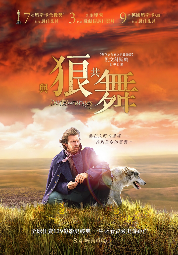 《查克史奈德之正義聯盟》《終極保鑣》好萊塢巨星凱文科斯納自導自演的《與狼共舞》,故事描述一名白人軍官意外與原住民建立起友誼,最後甚至與他們合作對抗入侵者,可以說是《阿凡達》的前輩!本片叫好又叫座,在第63屆奧斯卡頒獎典禮上,一口氣拿下包含最佳影片、最佳導演在內的7項大獎,為該年度的最大贏家,上映當年的全球票房更突破4.24億美金(約129億台幣),超越《魔鬼總動員》、《回到未來3》等超級鉅片,尤其凱文科斯納還是首次擔任導演,讓《與狼共舞》的成績更顯難得。《與狼共舞》拍攝期長達5個月,氣溫從突破37度到零下6度,動用超過500名臨時演員,以及無數水牛、馬、狼等動物,因為本片獲得奧斯卡最佳攝影獎的攝影師狄恩山姆勒(Dean Semler),對凱文科斯納在拍攝現場的表現印象深刻,「我跟很多經驗豐富的導演的合作過,但他們都沒有那麼自信。」《與狼共舞》將於8月4日在台上映!