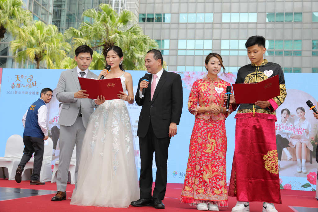新人們在市長、副市長見證下,宣讀真愛宣言,並互相配戴真愛密碼銀手環作為定情信物,現場洋溢甜蜜幸福。