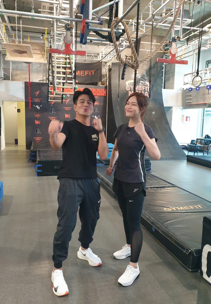 ▲ 體育出身的郭彥均,和小慧一起前往具極限體能挑戰設施的健身房做訓練。(圖:緯來綜合台)