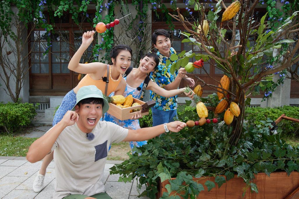 ▲ 柯有倫、李霈瑜(大霈)、江宏傑、黃湘婷化身奇幻小店成員,除了經營可可甜點店,更要研發可可禮盒,用在地食材走向國際。(圖:客家電視)