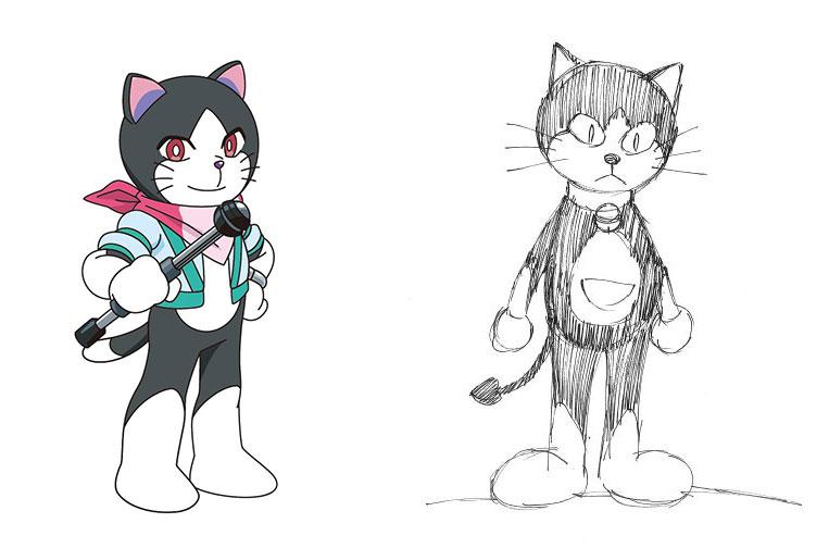 ▲ 古澤良太繪製的完美貓型機器人「索尼亞」的角色設計草圖。(圖:車庫娛樂)