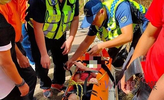 ▲救難人員使用吊掛器具垂降至方翁受困地點後,才成功協助方翁脫困。
