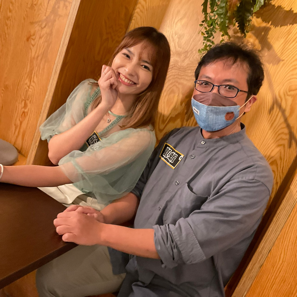 ▲ 林俞汝(左)鐵粉嵐蝦和心目中女神合照害羞不敢拿下口罩。(圖:17直播)