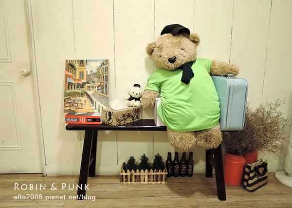 熊熊拿著旅行箱準備要出國自助旅行嘍~店內放著好多很可愛裝置品,小朋友看到這些可愛的佈置都很喜歡,而且也很適合在這裡一起留影做紀念!