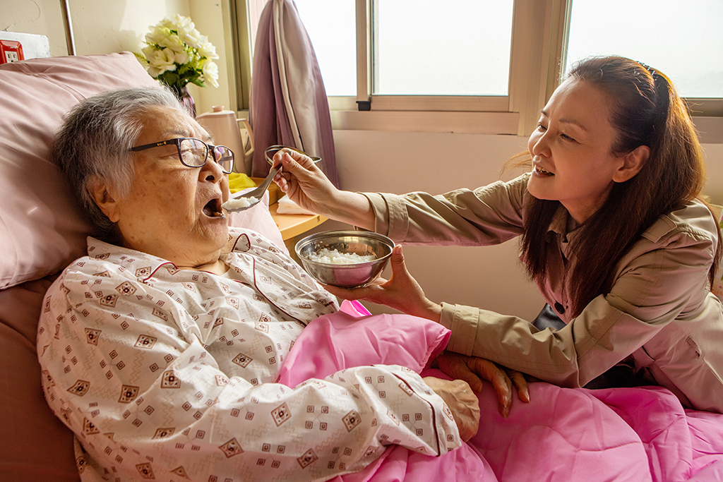 《搜尋者》劉引商飾演山東奶奶,王淑娟(右)飾演訪視志工照顧個案(圖:大愛電視提供 黃華安攝影)