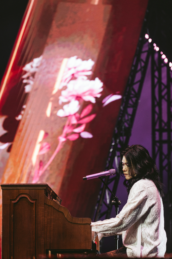 ▲ 主唱聖皓坐在鋼琴前自彈自唱 並引領著觀眾大合唱。(圖:相信音樂)