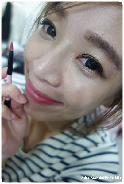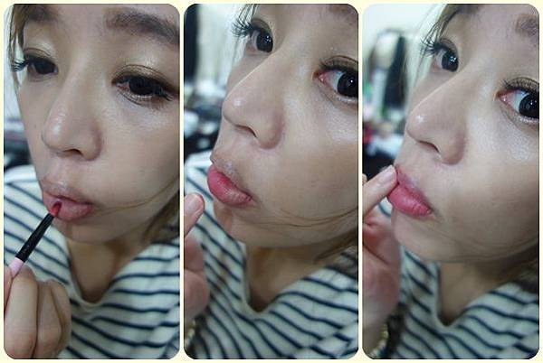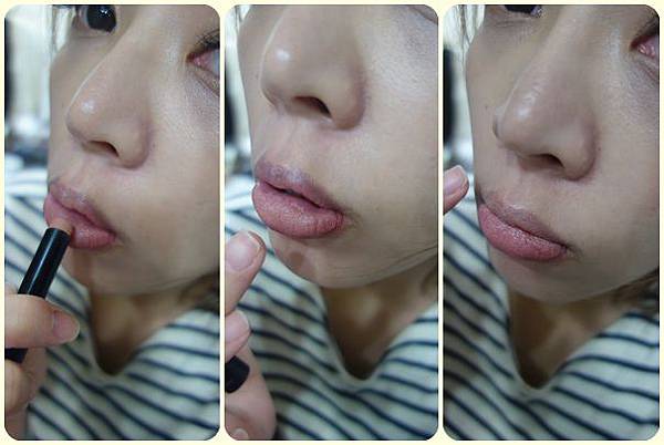 接著就擦上惹火~~我習慣先用純比畫些在唇中央,然後再慢慢暈開