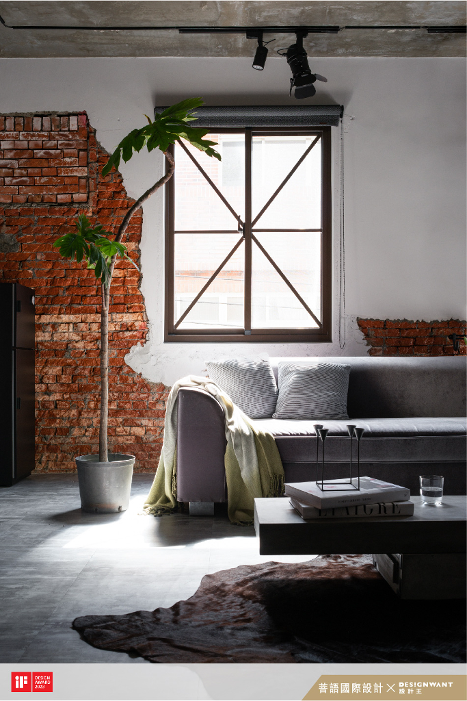 原始建築因潮濕而破損,設計師在剝落牆面後,選擇保留原貌,以防水漆做防護,表現出一種粗獷而充滿情感的風格。在空間可用性上,迎合了業主變換家居擺設的需求,以具機動性的物件作為優先考量。開放式的格局使空間更具靈活性,讓家的面貌隨著家中成員不同階段而有所變化,提供了最大的生活靈活度。