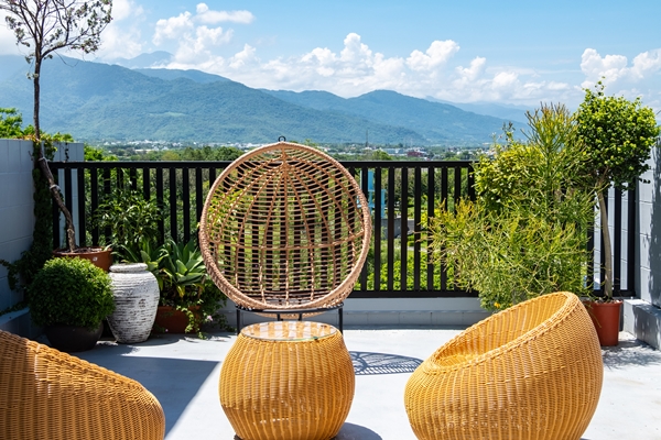 三樓主題是《午夜巴黎》,電影敘述男主角在同一條街弄踏進1920年的故事,共享空間打造一個懷舊閱覽室,彷彿穿越時光回到過去美好年代。四樓公共場域及五間客房皆有獨立陽台,踏出陽台即可欣賞台東湛藍的天空與層層山巒。房間以《布達佩斯大飯店》為主軸,運用單一柔和色系,大理石、黃銅與絨布元素打造搶眼風格。
