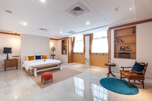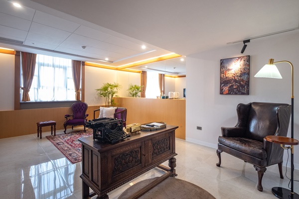 全新旅店注入與眾不同迷人性格,用創意手法讓昔日經典再現。雅致留白大廳陳設旅宿主人收藏的骨董家具,以電影為主題 帶著賓客人一起進入不同時空的旅行。一樓「我的藍莓夜」,美式復古調性,強烈色系對比區分酒吧及「花里岸WARIYAN」用餐區。二樓開放空間為《享受吧一個人的旅行》,以素雅大地色系呈現輕鬆愜意情境。