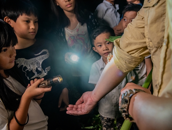 透過探索、發現、觀察的深度學習,暑假限定、夏夜探險體驗,帶領大小朋友認識夜幕下的「六福莊」其自然棲地和豐富物種。像是畫伏夜出的獨角仙,在光蠟樹上覓食享用大餐的悠哉模樣,為什麼有些獨角仙白白的?剛羽化的鞘翅怎麼看?會動的「樹枝」原來是苗條的竹節蟲,一窺昆蟲世界的精彩夜生活。