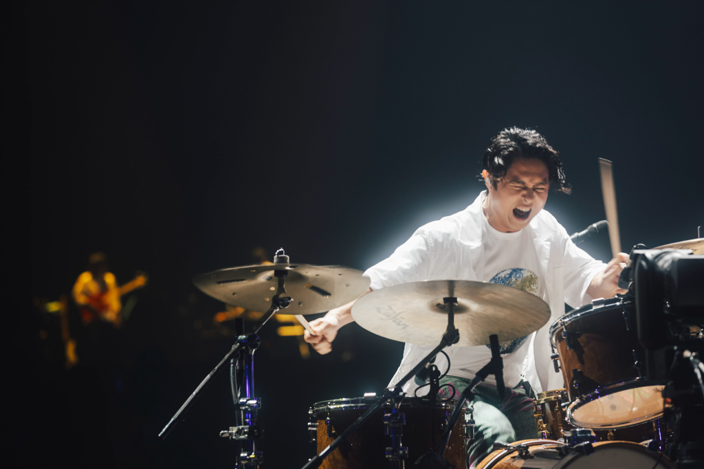 ▲ 哲謙激情打鼓,帶動巨蛋1萬粉絲狂熱搖擺。(圖:相信音樂)