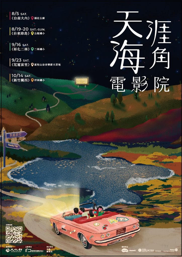 「天涯海角電影院」承接修復推廣的使命,自2018開始,踏遍台灣20多個鄉鎮與離島,除了讓不同世代的民眾因影像而與過往的時光相遇,也將美好的觀影體驗帶往沒有電影院的偏鄉。今年國家影視聽中心獲得財團法人上海商業儲蓄銀行文教基金會、新北市新莊南區扶輪社及財團法人明基文教基金會贊助支持,一起攜手實踐臺灣電影文化資產永續保存,並推動偏鄉文化平權及近用,即將啟程前往台南大內、台東綠島、彰化二林、花蓮富里與新竹關西,與民眾在星空下、蟲鳴聲中,創造一個夜晚的魔幻時刻。